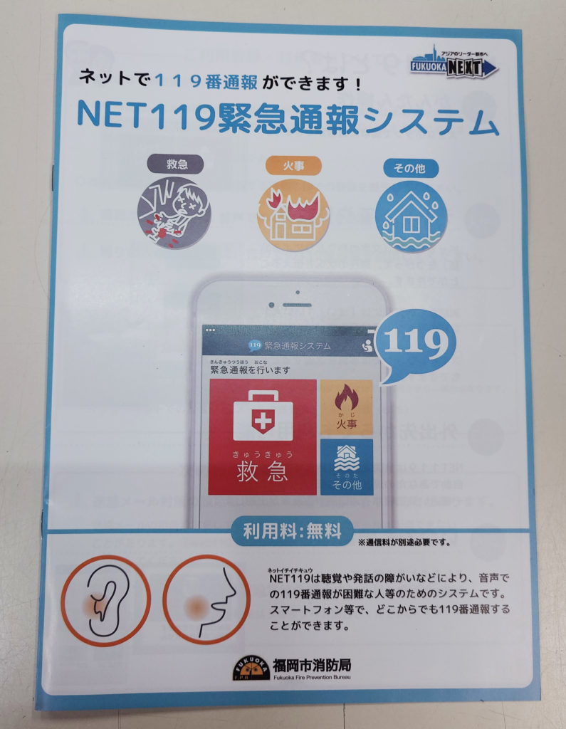 福岡市消防局より「NET119緊急通報システム」のパンフレット印刷の仕事をいただきました。