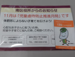 福岡市南区役所から「マグネット」作成の仕事をいただきました。毎年11月に「オレンジリボン・児童虐待防止推進キャンペーン」を実施し、児童虐待問題に対する深い関心と児童虐待防止のための広報・啓発活動に集中的に取り組みます。街中などで配布されていたりします。